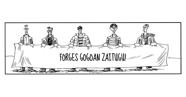 El Proyecto TIRABIRAK / Tiras que aflojan agradece la colaboración de Ripa, Zaldieroa, Axpi, Mattin, Oroz y Tasio al prestarnos sus originales. Las autoras y autores de los memes asumen la autoría de los mismos.